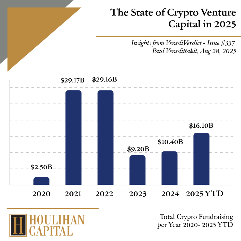 Crypto companies have already raised more than $16 billion year-to-date in 2025, with over 100 M&A deals announced—surpassing the total deal value of 2024 and positioning the industry for a historic year.